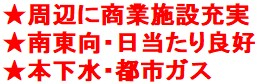 周辺に商業施設充実、生活に便利!南東向きにつき、日当たり良好!本下水・都市ガス!