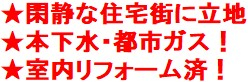 閑静な住宅街に立地!本下水・都市ガス!室内リフォーム済!
