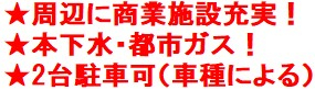 周辺に商業施設充実、生活に便利!本下水・都市ガス!2台駐車可(車種による)