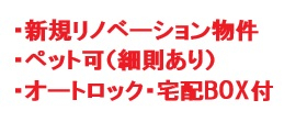 エレベータ、オートロック、ペット飼育可(細則有)、二階以上、宅配ボックス、都市ガス、空室、リノベーション